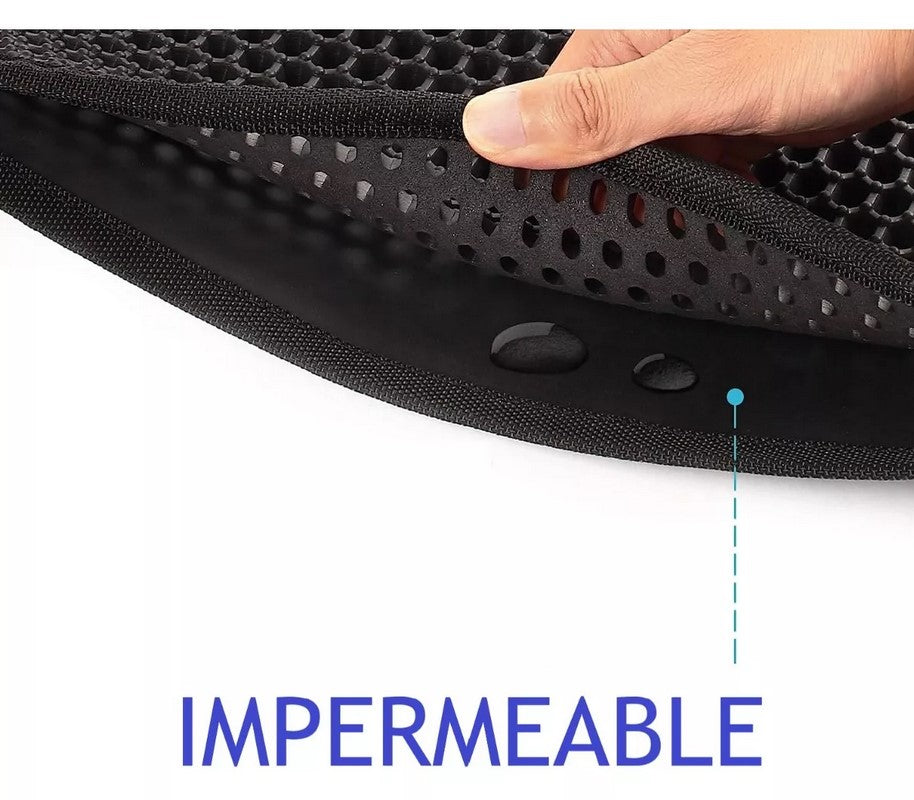 🔹 Cero arena en el piso: El sistema de doble capa con orificios tipo panal atrapa y retiene la arena, incluso la más fina, justo después de que tu gato sale del arenero.